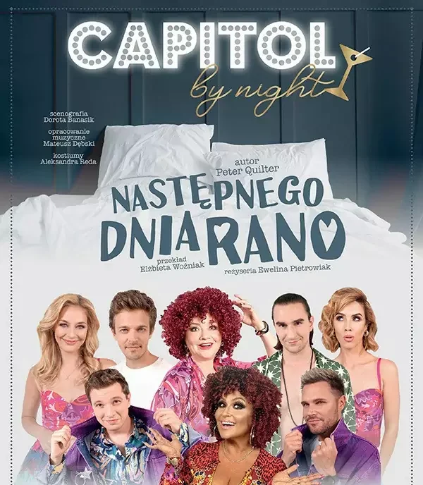 Capitol by night. Niegrzeczne sztuki bawiące i wabiące widzów wieczorową porą! W tym roku Teatr Capitol obchodzi swoje 15 urodziny. Z okazji jubileuszu, czeka na Was nadzwyczajna niespodzianka. Do dwóch dotychczas funkcjonujących scen teatralnych, dołącza jeszcze jedna, zupełnie nowa i jedyna w swoim klimacie teatralna przestrzeń. Capitol by night – to niepowtarzalne, eleganckie i kameralne miejsce, w którym w sobot-nie wieczory Widzowie mogą bawić się na komediowych spektaklach z nutką pikanterii, w gwiazdorskich obsadach. Ale nie zasiądą oni na typowej widowni. Tutaj atmosfera zrobi się dużo bardziej intymna… W klimatycznej przestrzeni, zamiast foteli pojawią się stylowe stoliki, przy których widzowie będą mogli celebrować wieczór, kosztując światowej klasy trunków i wytrawnych smakołyków. Sztuki teatralne w repertuarze Capitol by night zagwarantują widzom niezapomniane emocje, rozpalając zmysły i jednocześnie bawiąc ich do łez. Goście będą mogli tu posmakować akcji z pieprzykiem, pikantnych dialogów, soczystych dowcipów, a nawet "momentów" w aurze pokusy i namiętności. Jednym słowem, każda historia będzie jedyną w swoim rodzaju grzeszną przyjemnością, uwalniającą naszą wyobraźnię.