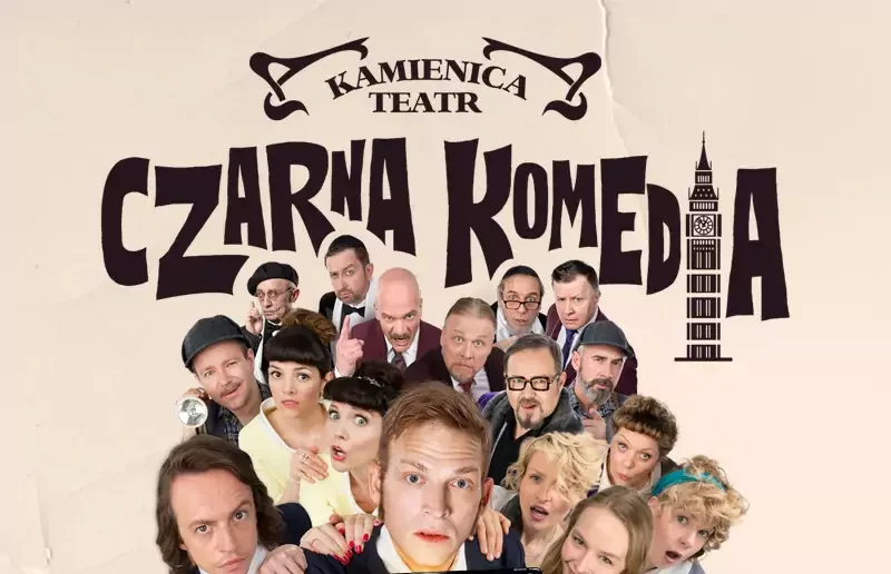 "Czarna komedia" autorstwa Petera Shaffera to jedna z najczęściej grywanych komedii na świecie. Fenomen tego przedstawienia polega m.in. na odwróconej logice: kiedy na scenie gaśnie światło, aktorzy poruszają się swobodnie jakby w ich świecie panowała jasność, kiedy jednak na scenie zapalają się reflektory, wszyscy bohaterowie "wpadają w ciemność" i poruszają się po omacku, stąd komiczność sytuacji i całe serie pomyłek.