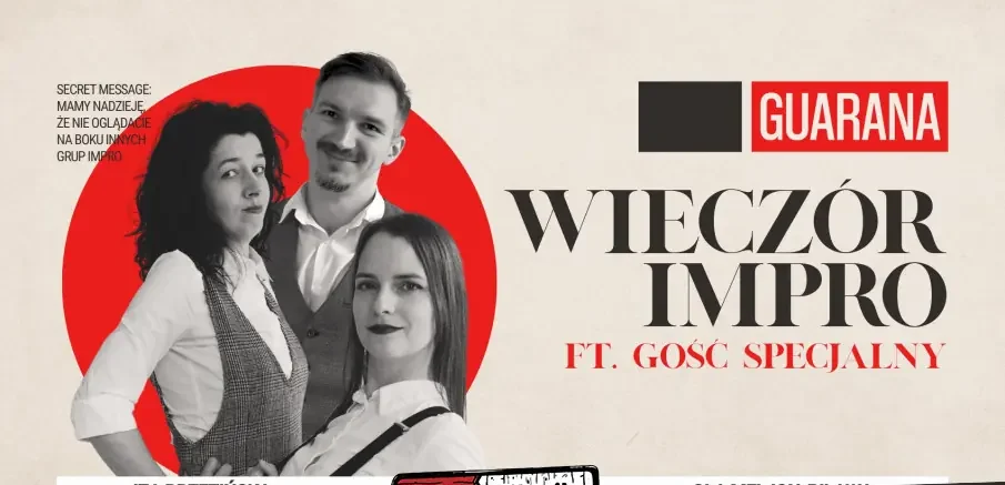 Cały tydzień próbowałeś być dorosły. To teraz cho na Wieczór Impro – komediowe show z głupimi wyzwaniami, śmiesznymi grami impro oraz znakomitymi gośćmi ze świata komedii i popkultury. Przez półtorej godziny możesz zapomnieć, że istnieje poniedziałek.